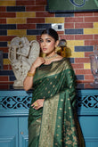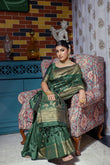 Topnotch Banarasi Silk Weaving Green Classic Designer Saree