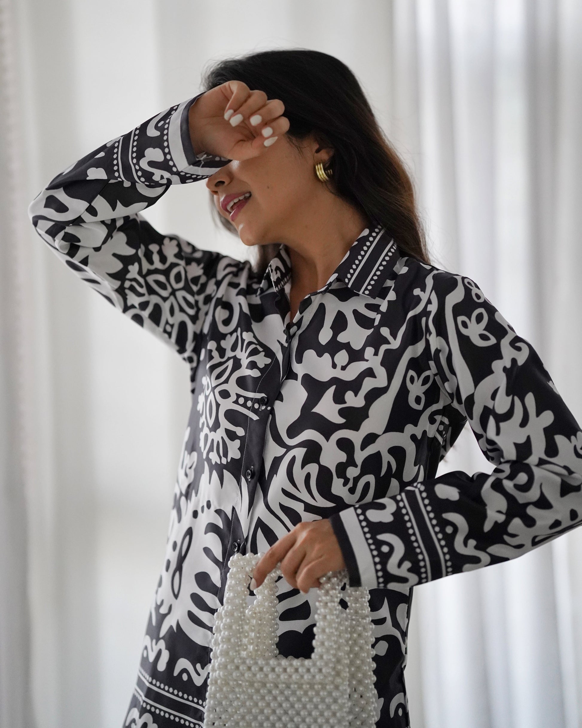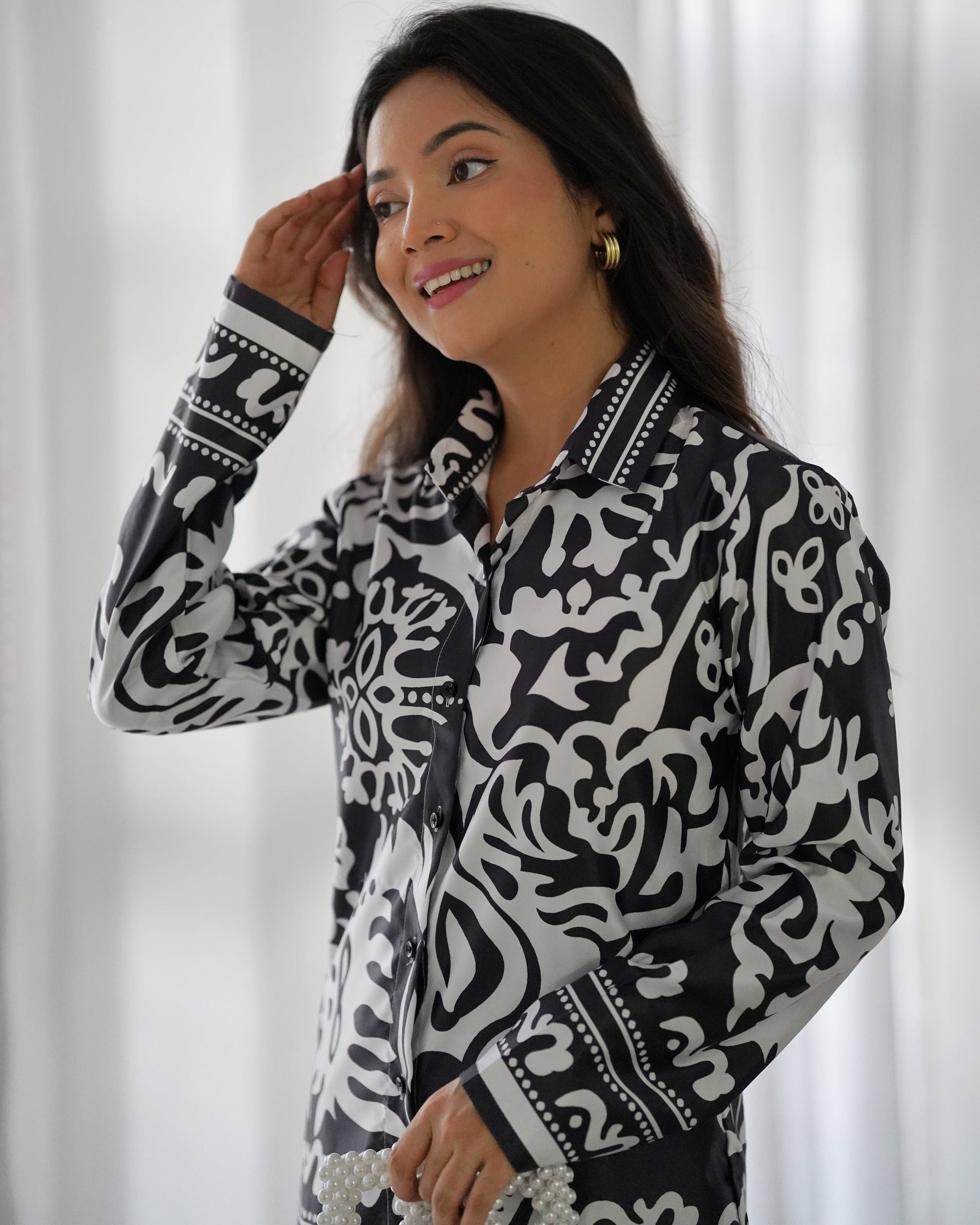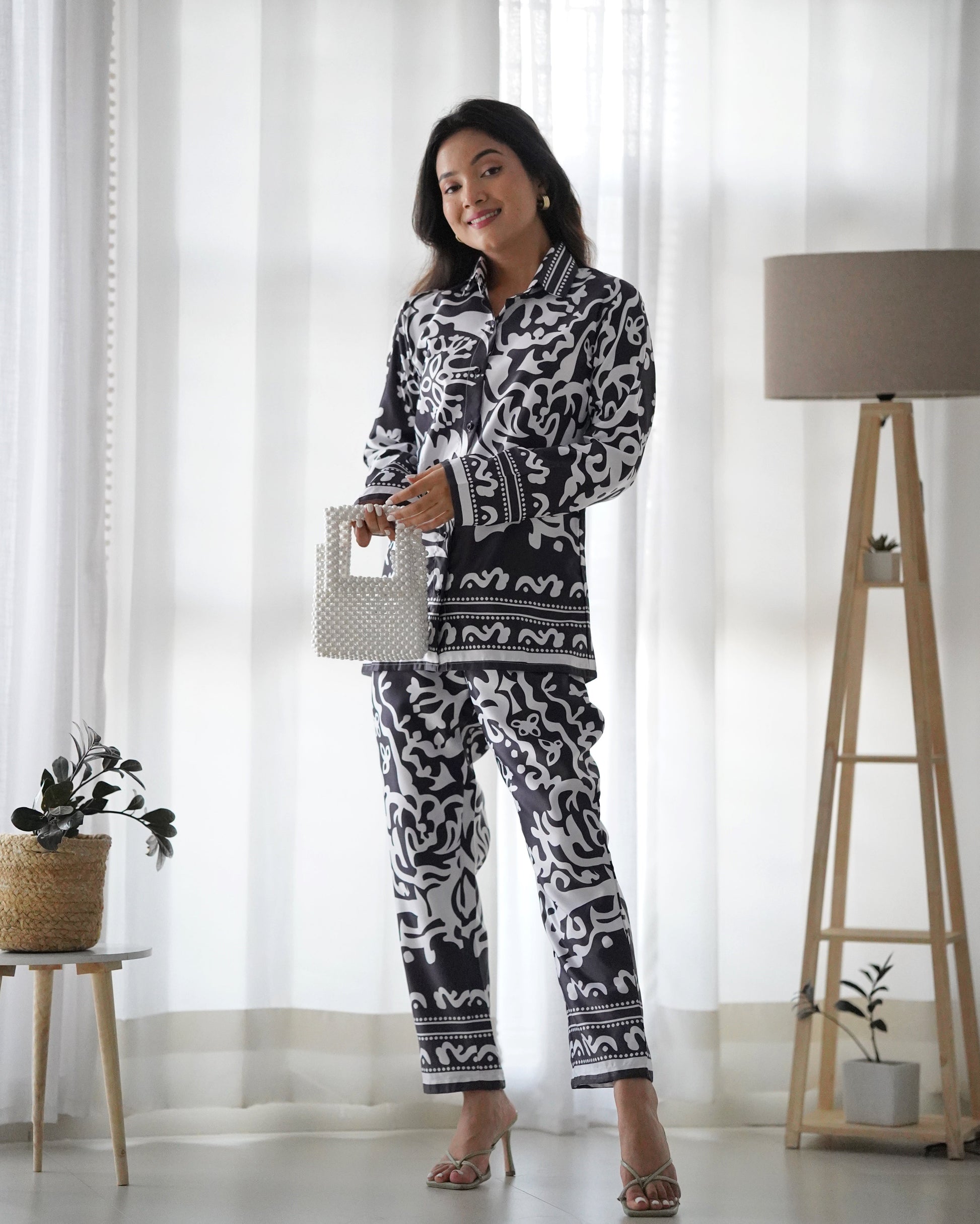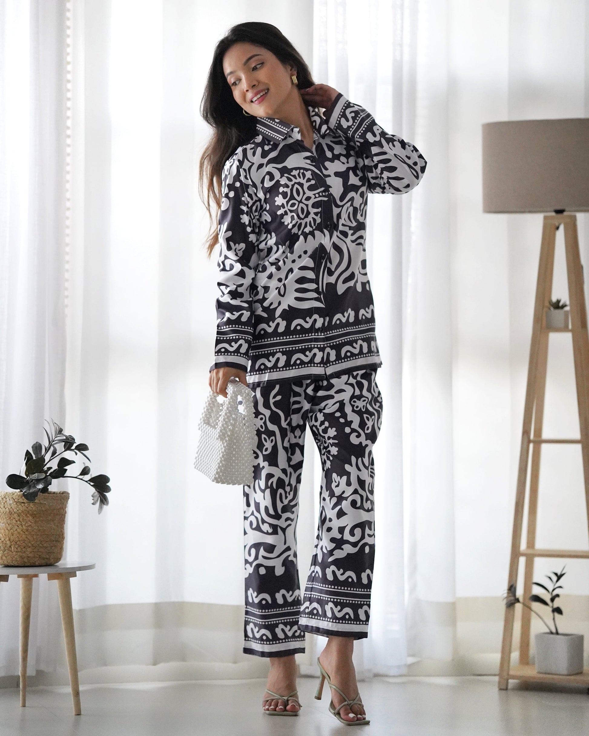 WHITE & BLACK FLORAL PATTERN CO-ORD SET