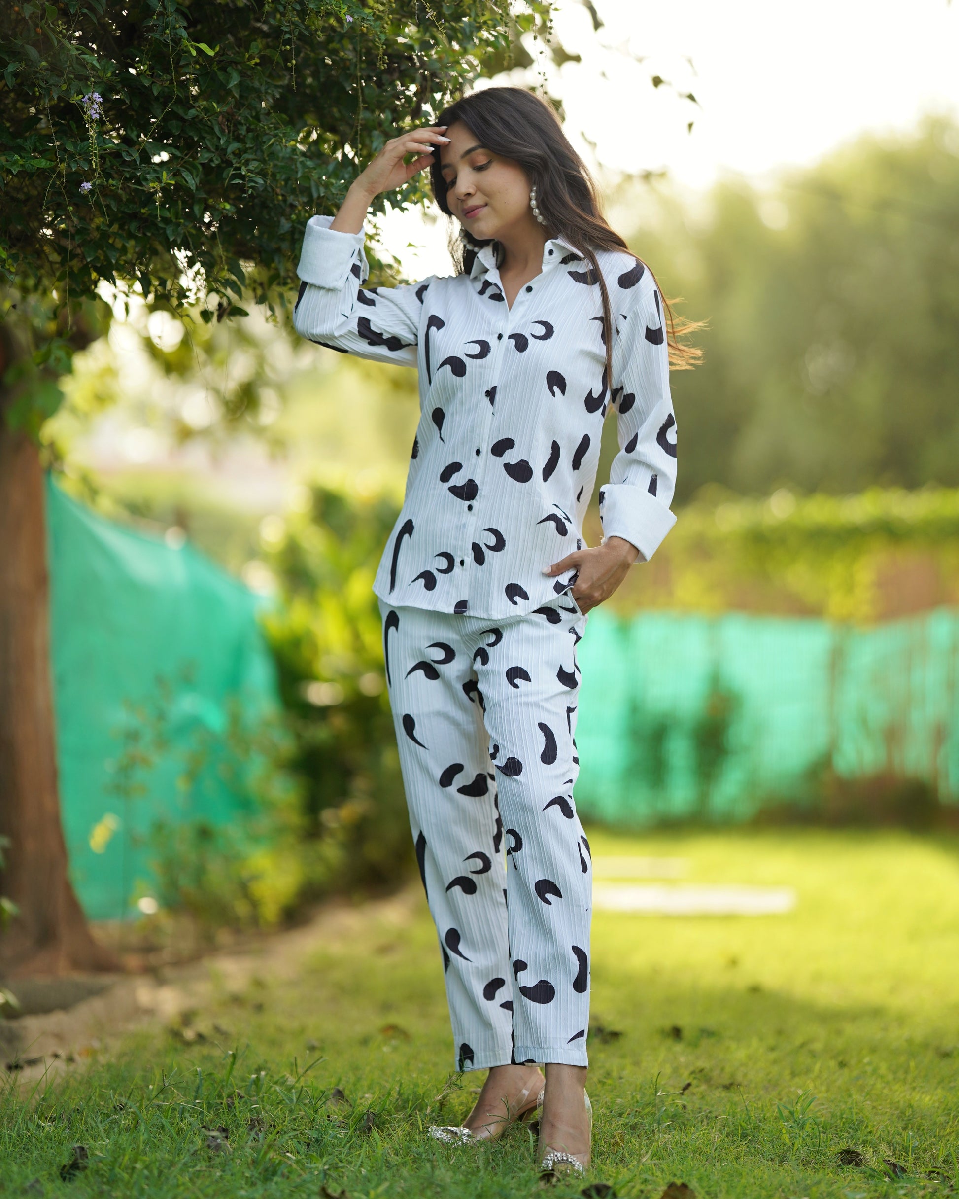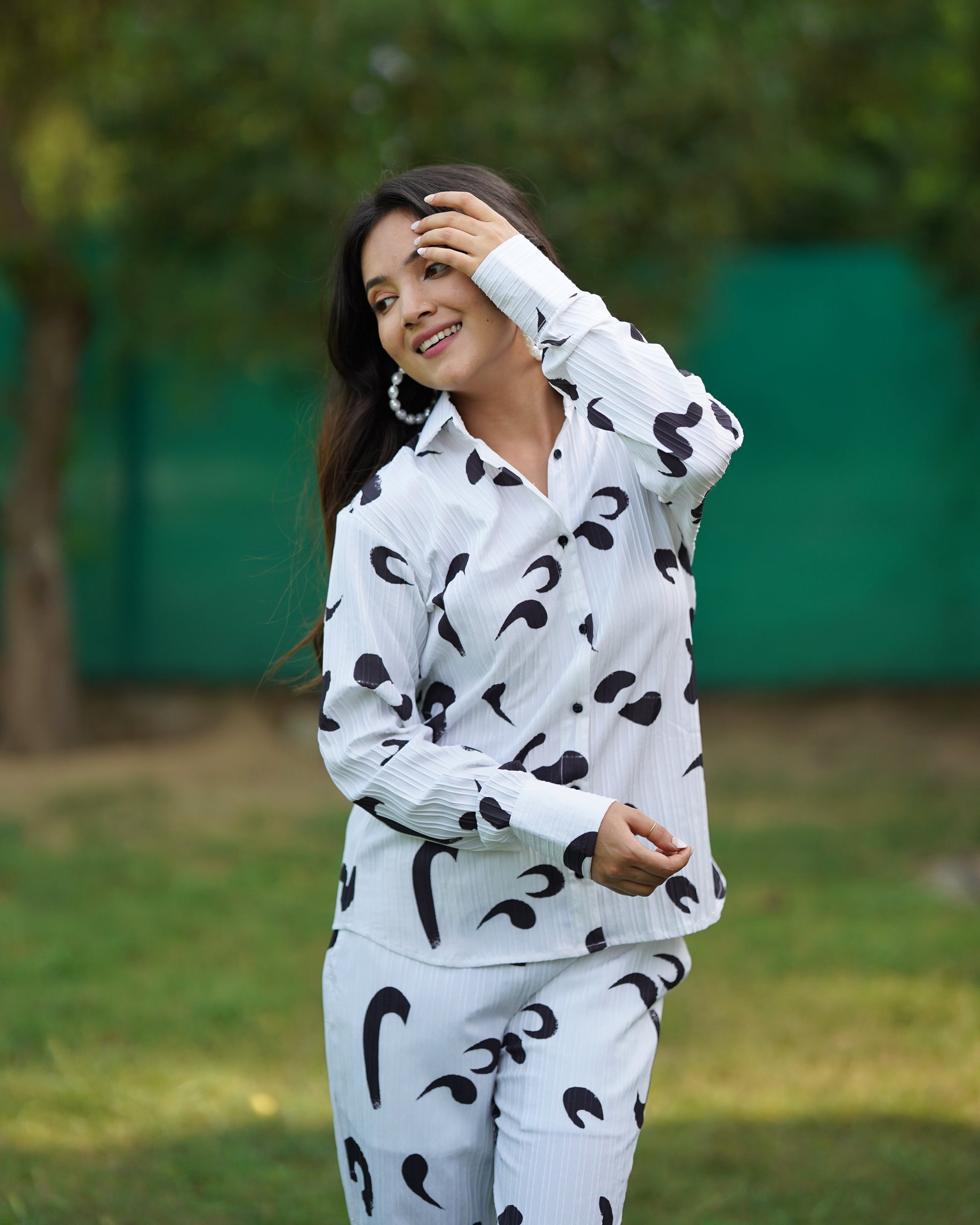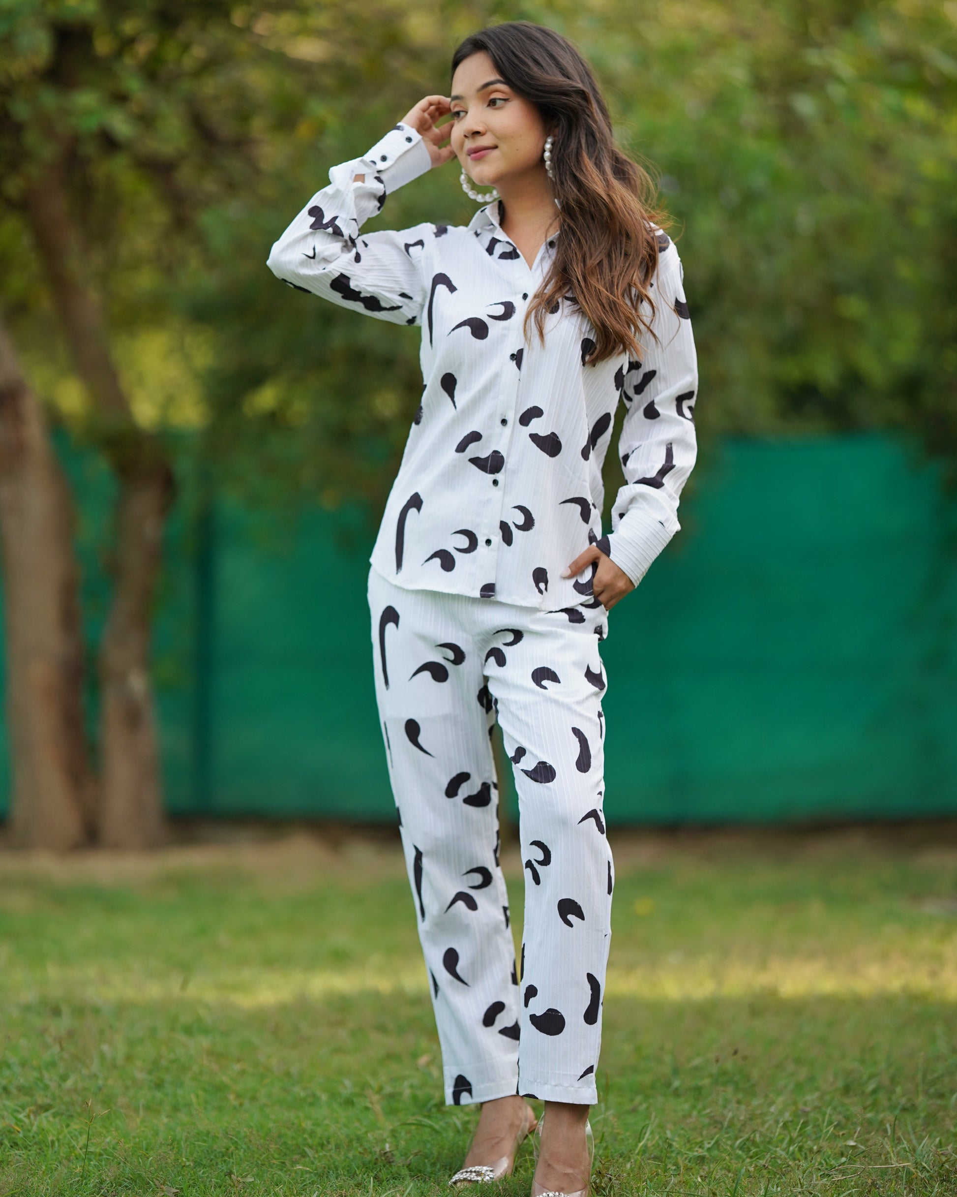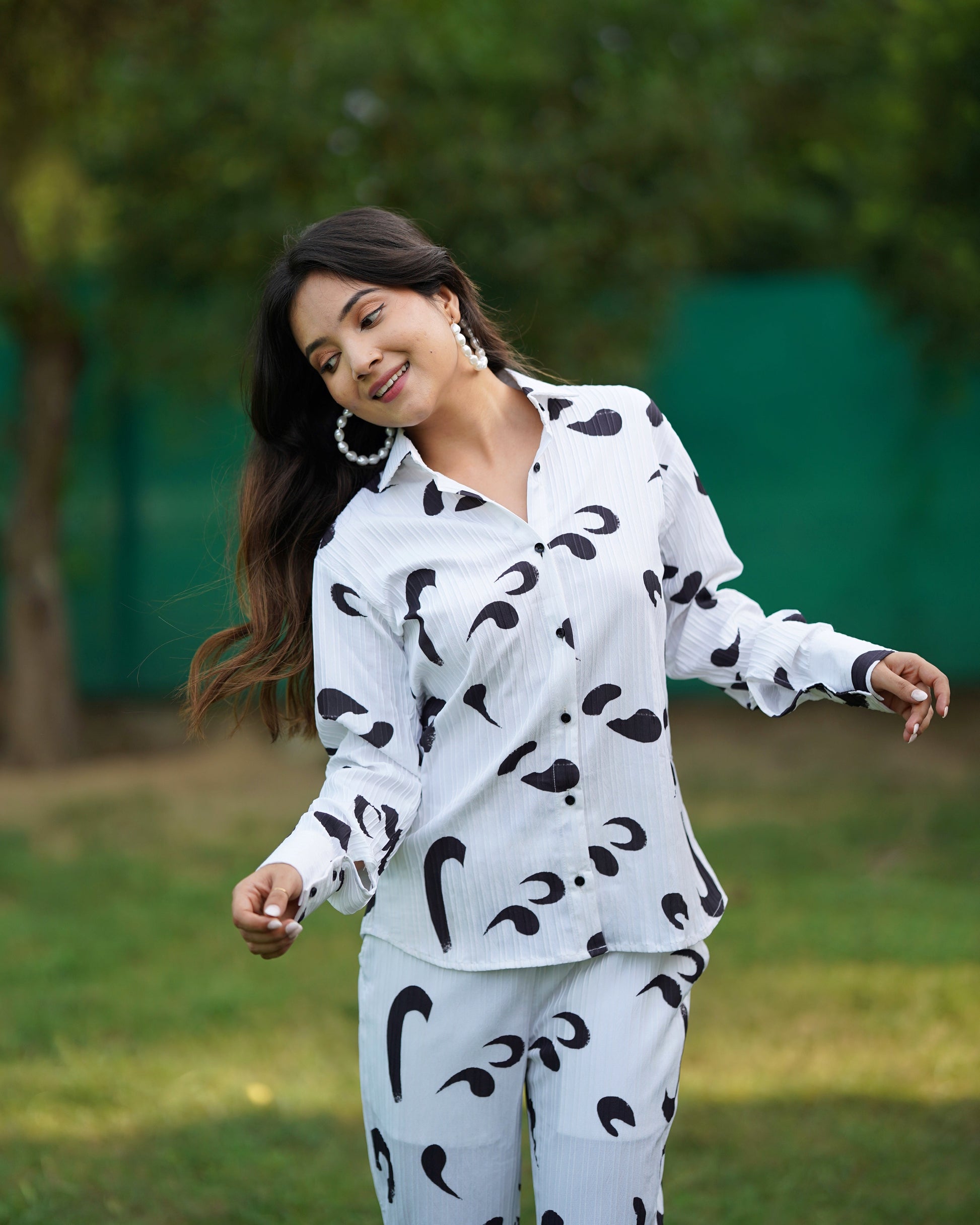 WHITE WITH BLACK TEXTURE CO-ORD SET